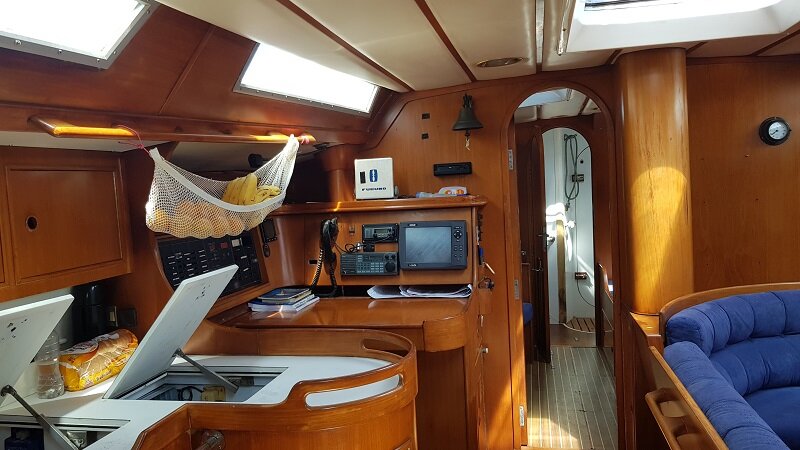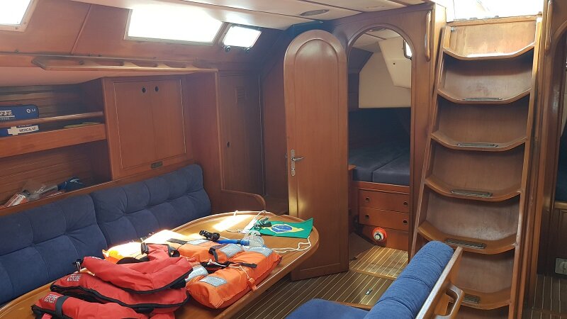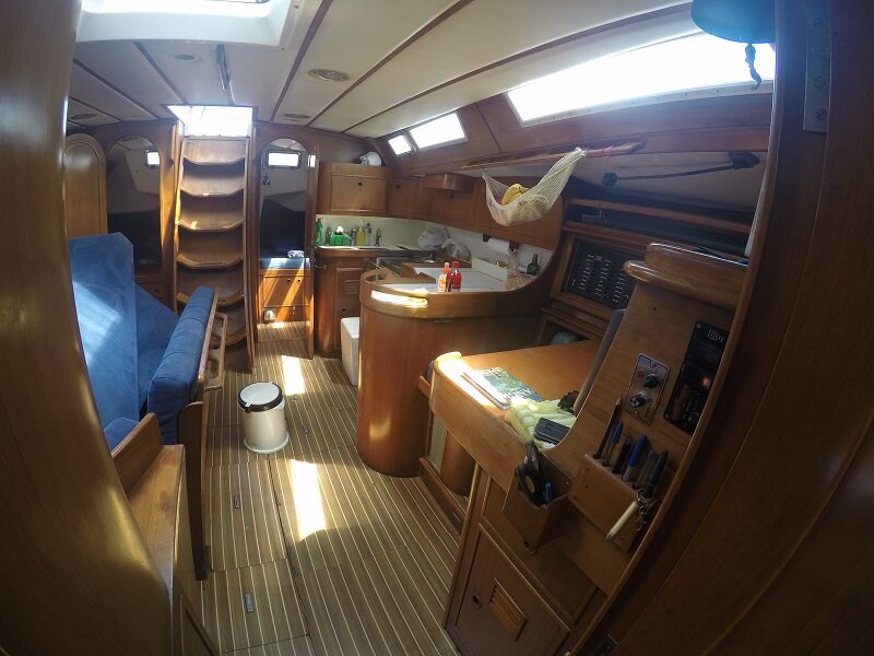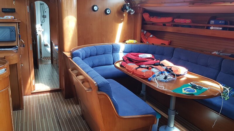 Mas veja como é o veleiro de 49 pés em que me hospedei: