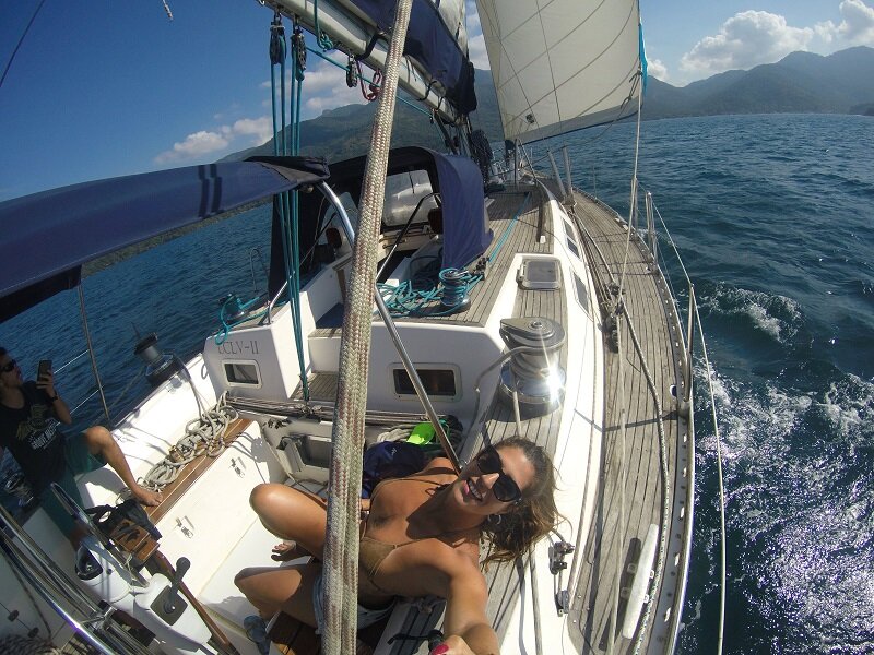 Velejar nunca foi uma atividade presente na minha vida, apesar de ter uma grande amiga (Raquel Hora do @horanaestrada) que sempre velejou desde criança e ter participado dessa etapa da vida dela. A vida dá voltas e desde que o Leve na Viagem surgiu, duas oportunidades únicas e maravilhosas apareceram: velejar na Polinésia e velejar em Ilha Grande. Poucas pessoas sabem da incrível possibilidade de se hospedar em um veleiro e ter uma “casinha móvel” em alguns lugares do mundo. Aqui no Brasil, essa vivência é menos explorada ainda, mas em diversas cidades de praia há essa alternativa. Recentemente, tive a linda experiência de me hospedar em um veleiro em Angra dos Reis. Fui convidada pela @gsailcharter para passar um final de semana no barco e passear pela Ilha Grande. Mas, antes de contar os detalhes de como funciona, é preciso que você saiba que se hospedar em um veleiro significa, basicamente: