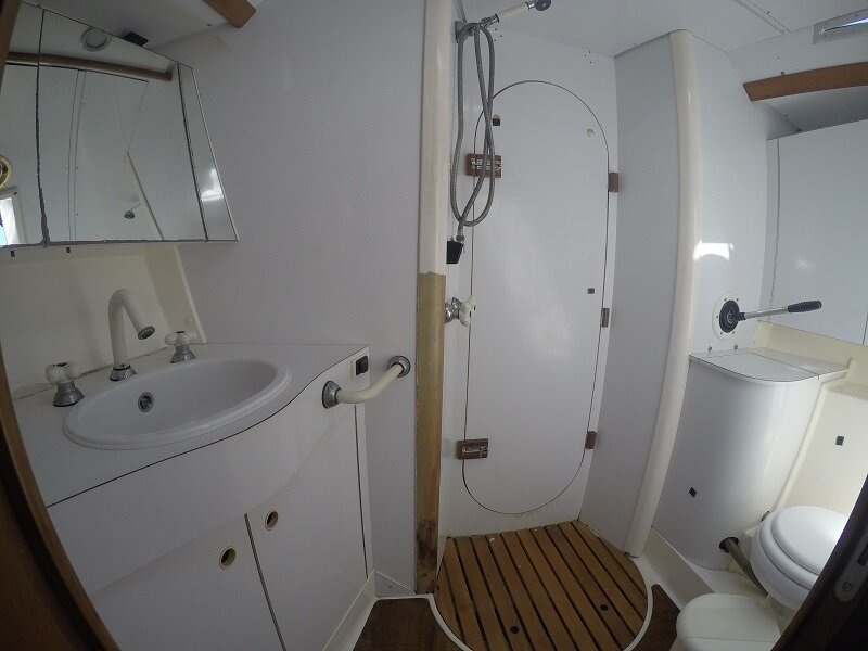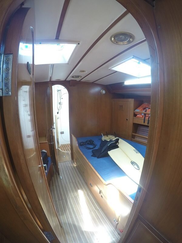 A @gsailcharter tem alguns barcos e o que eu conheci foi um veleiro de 49 pés. Tem 1 suíte, outros dois quartos que compartilham um banheiro e um quarto que fica na “sala” no barco. Tirando o capitão, 9 pessoas podem se hospedar lá ao mesmo tempo. Esse é o maior da empresa, mas tem outro, por exemplo, de 36 pés que cabem 6 pessoas.