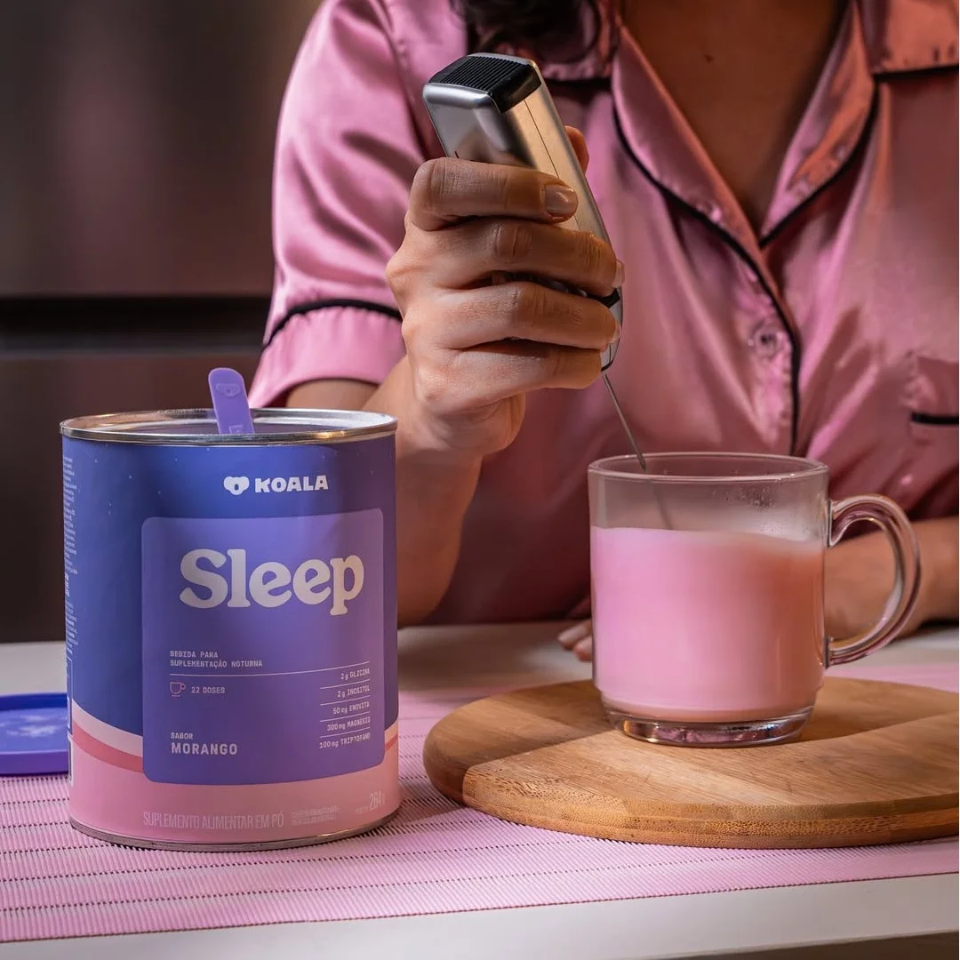O Koala Sleep de morango é uma bebida funcional desenvolvida pela Caffeine Army para melhorar a qualidade do sono. Sua fórmula combina magnésio, triptofano, zinco e vitaminas do complexo B para promover relaxamento natural.